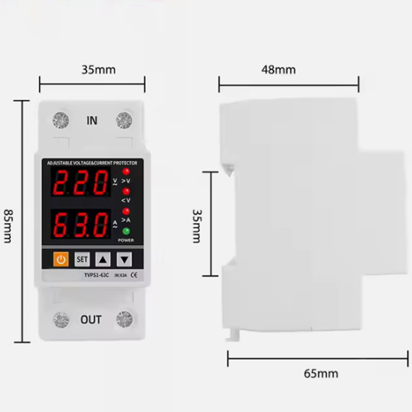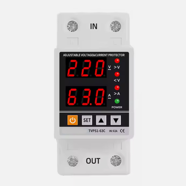 محافظ ولتاژ و جریان تکفاز فول دیجیتال مدل TVPS1-63C با توان 63 آمپر یک محافظ برق ورودی ساختمان است که در مسیر ورودی برق اصلی ساختمان و یا واحد اپارتمان نصب میشود وتمامی لوازم داخلی را در مقابل نوسانات ولتاژ و همچنین اضافه جریان محافظت مینماید،همچنین این محافظ دارای نمایشگر همزمان ولتاژ و جریان ورودی ساختمان می باشد شرکت سازنده قابلیت تنظیم 15 پارامتر مختلف را در این دستگاه پیش بینی کرده است،از جمله امکان مشخص کردن حد بالای ولتاژ قطع مدار و حد پایین قطع و همچنین میزان اضافه جریان مورد نظر طبق نظر برقکار و طراح برق واحد مورد حفاظت. همچنین زمان تاخیر در وصل برق در زمان نوسان قابل تنظیم است و همچین یک کلید جهت وصل کردن سریع برق در صورتی که نمیخواهید منتظر گذشت زمان تعیین شده باشید نیز پیش بینی شده است. همچنین یکی از ویژگی های منحصر به فرد این محافظ سرعت بالای قطع خروجی می باشد ،در صورتی که ولتاژ از حد تنظیم شده خارج شود در کمتر از 0.1 ثانیه خروجی قطع خواهد شد و لوازم برقی هیچ آسیبی نخواهند دید.بدنه این محافظ به اندازه تقریبا دو فیوز مینیاتوری طراحی شده است ،به صورتی که میتوان آن را در جعبه فیوز داخلی منزل نصب کرد تا از تمامی تجهیزات محافظت کند.