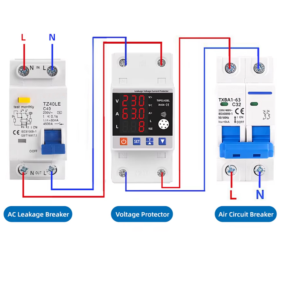 محافظ ولتاژ، جریان و نشتی جریان 63 آمپر