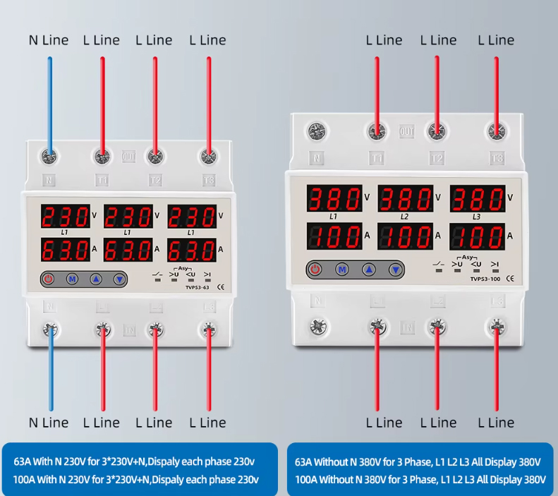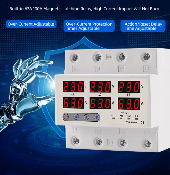 🔌 محافظ ولتاژ جریان سهفاز TVPS3-100A