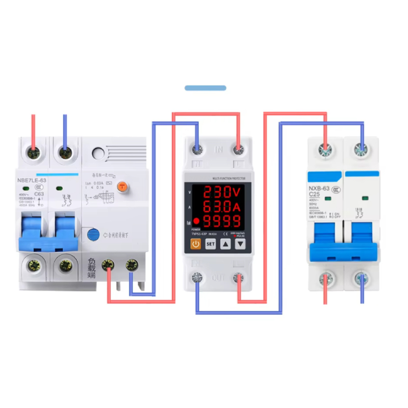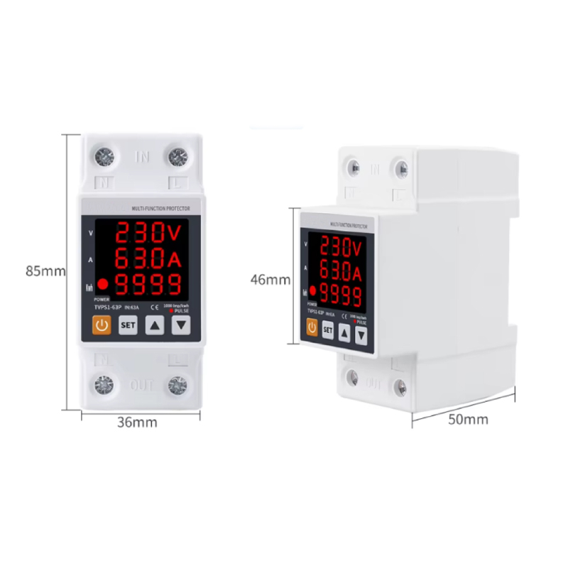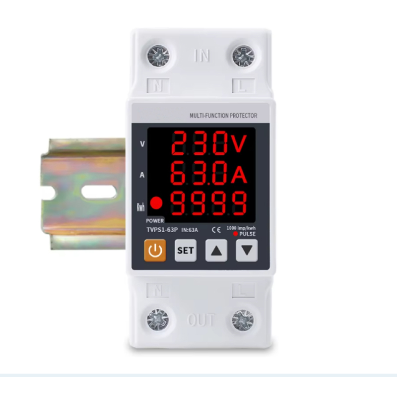 محافظ هوشمند ۳ در ۱ با نمایشگر دیجیتال LED، ترکیبی از محافظ ولتاژ، محافظ جریان و کنتور انرژی در یک دستگاه جمعوجور است.